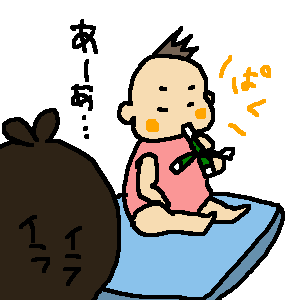 まだ食べられないアイスを食べさしのさじで口元に持って行ったりしやがる!!ガルル!!